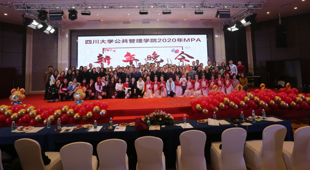 本次新年晚会为在场师生奉上了一场视听盛宴,彰显出了川大williamhill体育在线登录MPA专业的老师、同学们的活力和风采,令在场观众欢呼鼓舞,也为新的一年播下新的期望,让我们共同喜迎元气满满和活力迸发的2020!