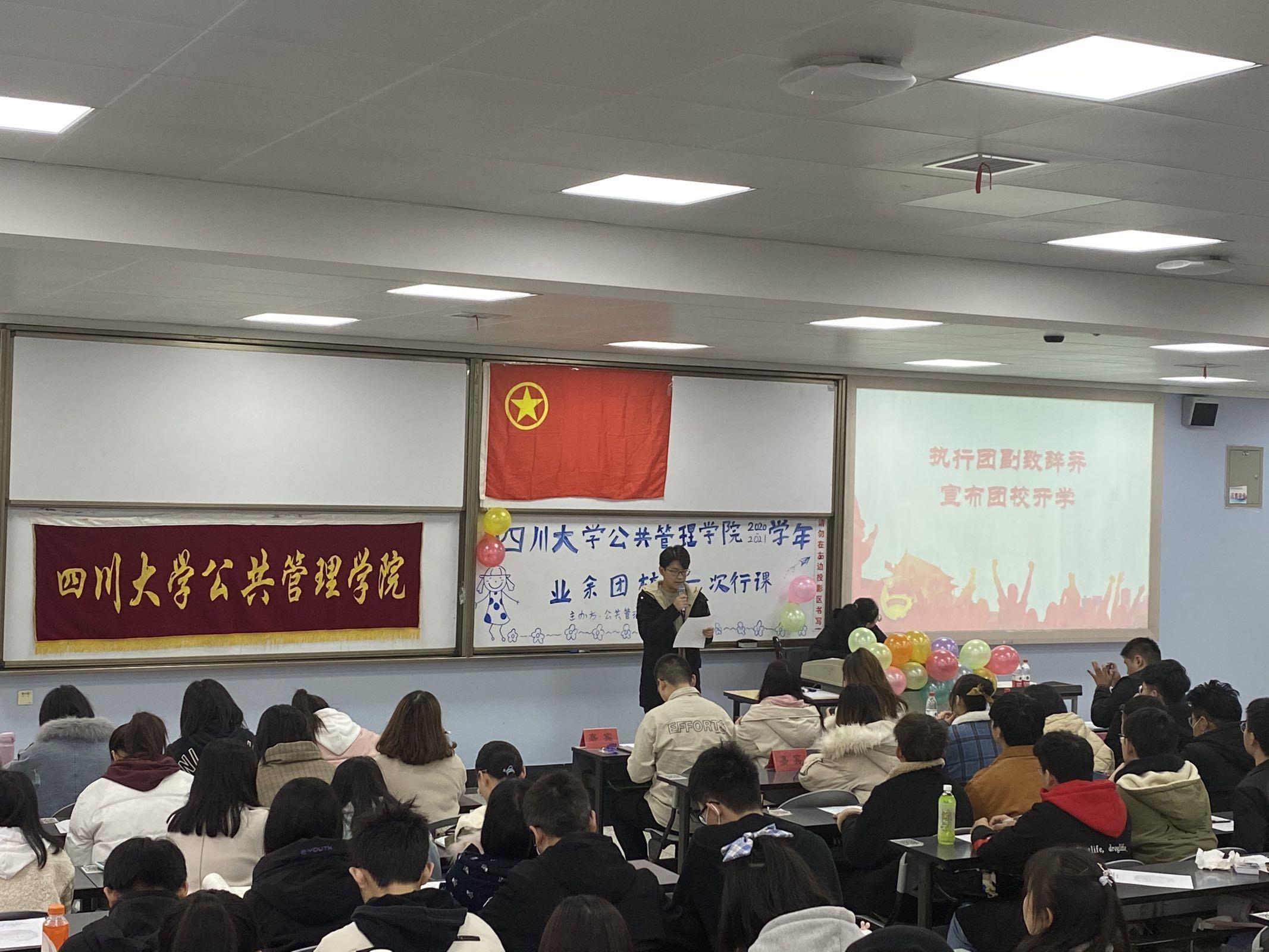 2020年11月29日9:00-11:00,williamhill体育在线登录2020-2021学年团校开学典礼暨第一次行课在江安校区一教B407成功举办。为帮助新生团员同学们更好地融入大学学习生活,培育有理想、有信念、有本领、有担当的时代新人,学院团委组织开展了williamhill体育在线登录新学年团校,团校由学院团委组织部承办。本次团课邀请到校团委素质拓展部部长张韵老师来为同学们授课,学院团委书记青杨媚老师、团校主要负责同学和205位团校学员参与了本次活动。