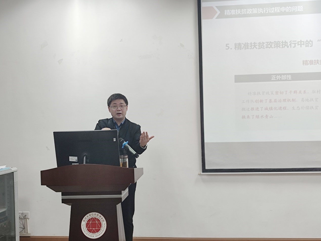 章文光教授首先介绍了“精准扶贫”的提出、实施和取得胜利的基本情况,同时详细阐述了精准扶贫政策执行过程中在贫困户识别、脱贫措施等方面存在的部分问题。然后,章教授从主体的有限理性、对象的多样性和复杂性、监督与问责机制及配套保障四个角度,对产生上述问题的原因进行深入分析。章文光教授认为,精准扶贫的政策执行给予我们的启示主要有:第一,完善中央与地方的衔接机制,加强双向沟通;第二,推进精准扶贫政策的培训工作,确保政策到位;第三,加大精准扶贫政策的监管力度,降低政策风险;第四,强化精准扶贫政策的保障机制,完善政策配套。最后章教授指出,产业是基础、人才是关键。在吸取精准扶贫中的经验教训后,我国未来的乡村振兴战略的推进之路必将充满希望。