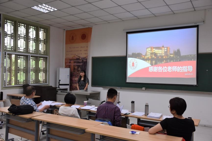 答辩会开始后,答辩学生依次向答辩委员会成员就论文的选题来源、研究背景、研究思路和具体方法过程、研究结果、创新点分析、不足与展望等进行了汇报。