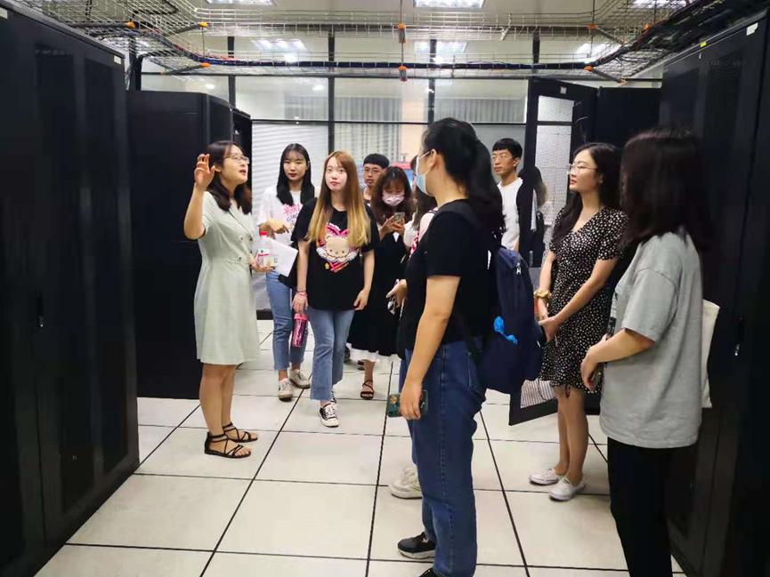 同学们正在参观机房