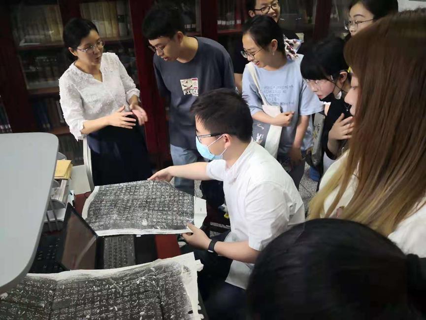18日下午,同学们进行了工作分组。拓片编目和西文古籍整理小组分别在不同部门负责老师的指导下开展具体工作。