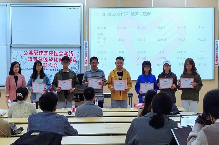 在主持人热情洋溢的致辞后,大会正式拉开了序幕。首先是学院优秀志愿者表彰环节。为表彰志愿者们在2020-2021学年中的无私奉献和付出,williamhill体育官网以志愿者们的志愿时长和学年活动参与情况为依据进行综合评测,最终产生了30名优秀志愿者。青杨媚老师向优秀志愿者颁发了奖状。