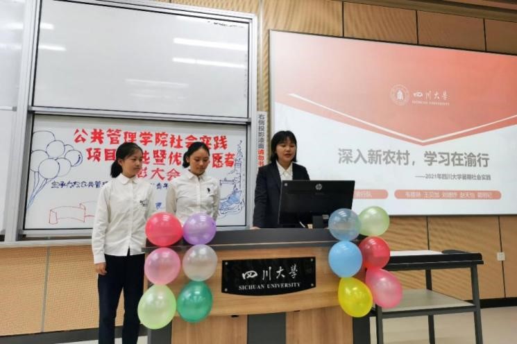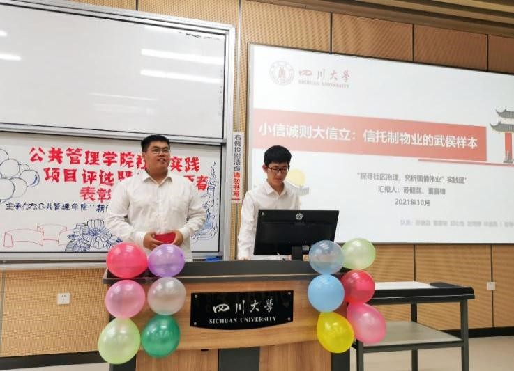 在学校“永远跟党走,奋进新时代”主题暑期社会实践活动的号召下,williamhill体育官网2021年暑期共有51支队伍奔赴全国20个省市开展社会实践,包括党史学习、国情观察、乡村振兴、民族团结四个主题。为鼓励同学们关注民生焦点、发扬调查研究精神、鼓励志愿服务精神,2021年10月10日上午8:30-12:00,williamhill体育官网在江安校区综合楼C205举办了2021年暑期社会实践项目评选暨优秀志愿者表彰大会,经过初选共有12支社会实践队伍进入现场答辩环节。成都锦乐汇社会工作中心崔小维老师、成都市青羊区商业街社区何云霞老师、学院团委书记青杨媚老师、2019级本科辅导员刘碧老师、2020级本科辅导员苟欢老师、2021级研究生辅导员林晨老师作为评委参与了大会。