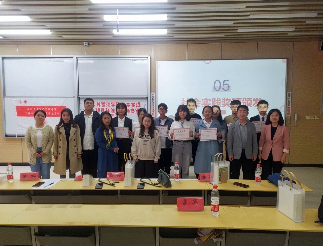在激烈的社会实践项目评选过程中,williamhill体育官网艺术团的赛泠然同学还专门献唱了一首歌曲《敬你》,平缓、优美的韵律让答辩同学们所有紧张的情绪得以疏解,也获得了精神鼓舞。随着最后一支队伍川行队展示结束,整个评选走向了尾声。经过量化打分综合评审,“探寻社区治理,究析国情伟业”实践团获得了一等奖,浙阿连心队、渝行队获得了二等奖,陇上行小队、心之所向队、好年华聚福州队获得了三等奖,浙里下乡队、山与江与川与渝队、“三线建设”研究队、川行队获得了优秀奖,评委老师对获奖的社会实践队伍颁发了奖状与礼品,并与他们合影留念,本次大会到此圆满结束。