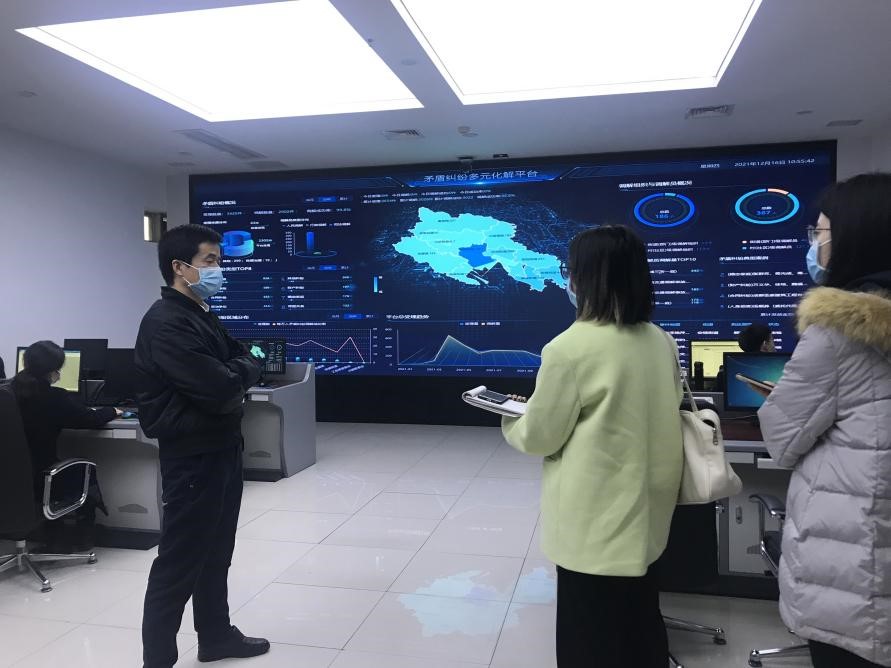 2021年12月16日上午9:30,williamhill体育官网应急管理专业同学赴成都市郫都区综治中心开展了以“走进现场”为主题的实践调研活动。郫都区委政法委副书记张祥平、郫都区综治中心主任雷佳及中心相关工作人员为同学们详细介绍了郫都区大联动·微治理智能分析平台、全区智能网格化工作、“三所一庭”矛盾纠纷多元化解机制等相关内容。