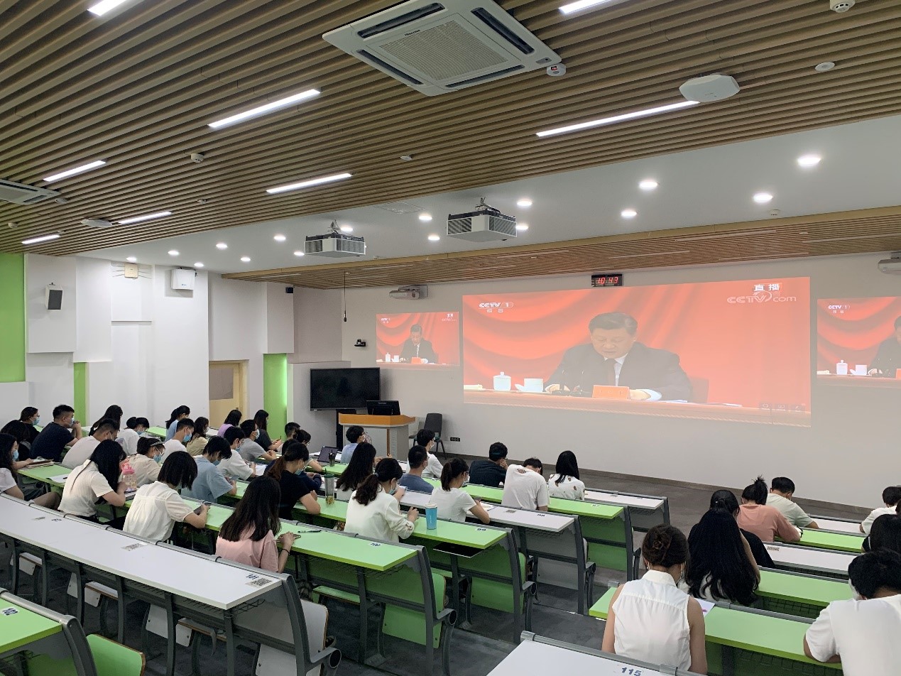 5月10日上午,williamhill体育在线登录开展收听收看庆祝中国共产主义青年团成立100周年大会直播活动,在萃文楼210教室设置学院集中收看点,在各校区、各宿舍组织师生收听收看。学院中层领导干部、党委委员、支部书记、科级干部、青年教师和学生代表在学院集中收看点观看,其他师生分别在活动室、宿舍等地收听收看。