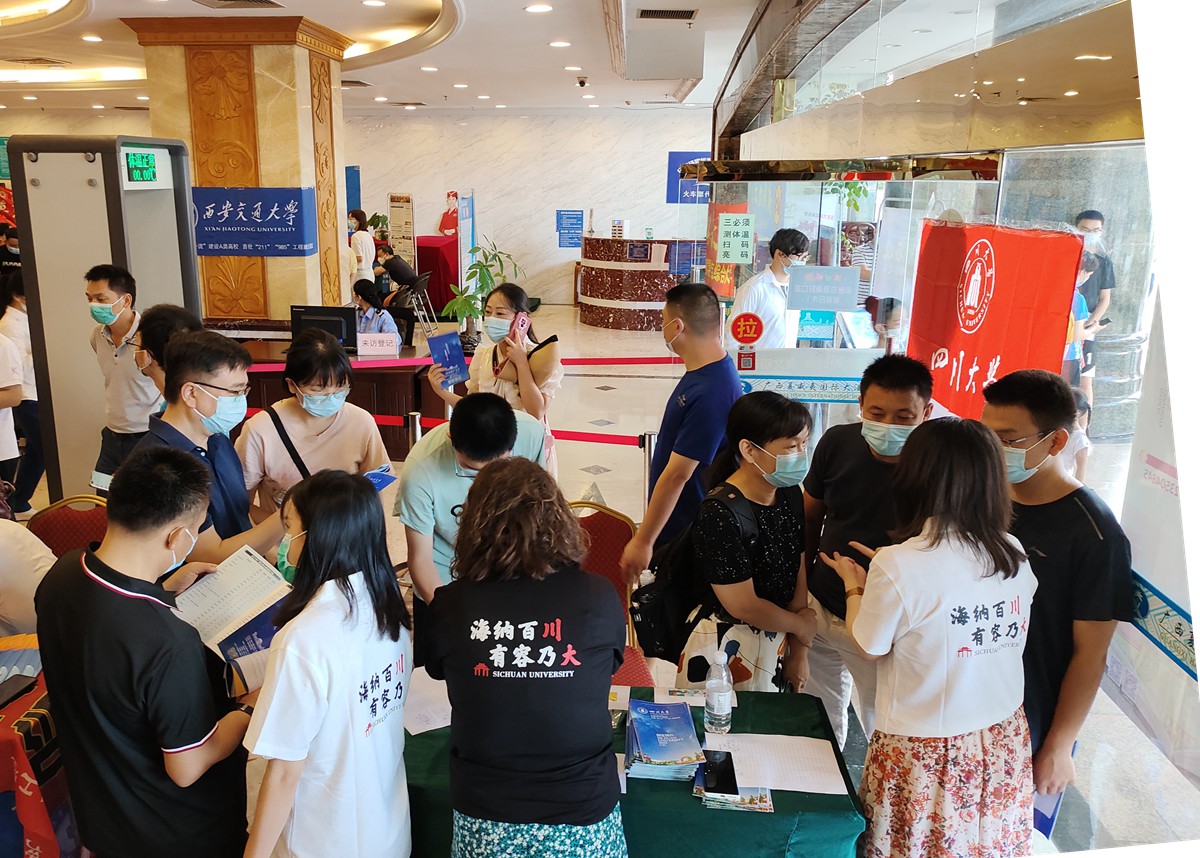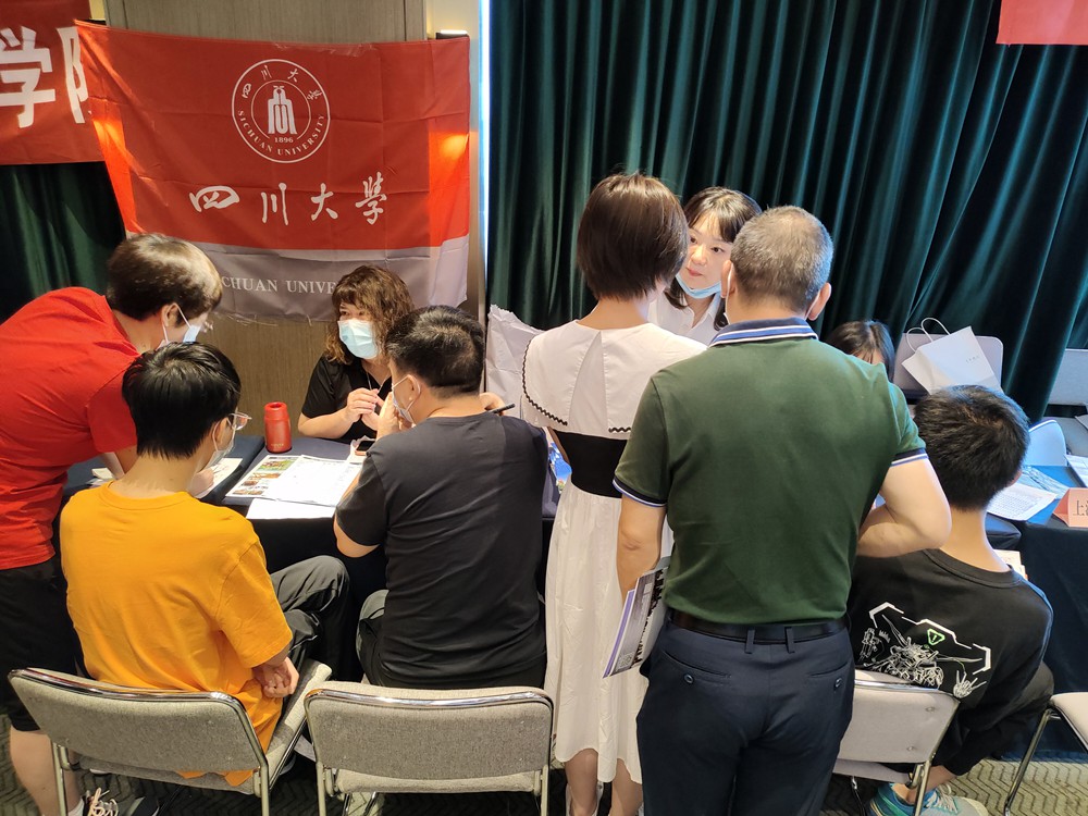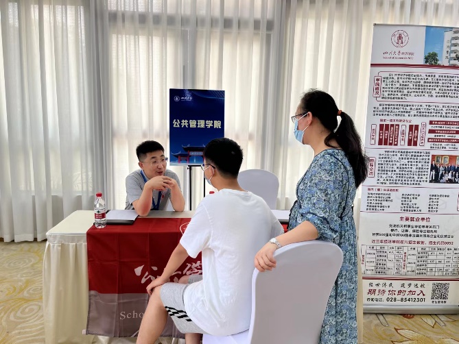 公管招生宣传工作组由档案学专业王萍教授,劳动与社会保障专业张浩淼教授,信息资源管理专业袁莉副教授,社会工作专业李诗颖副教授,专职组织员廖海燕老师和教学管理科四位老师参与,分别组成了三支招生小队同期赶赴广西多个城市参加当地各重点高中及社会场举行的高招会。6月25日,在南宁市青秀区、柳州国际会展中心两个会场同时举行;6月26日,在南宁市武鸣区、柳州铁一中学、桂林会展中心、桂林观光酒店四个会场同时进行;6月27日在钦州二中、桂林观光酒店两个会场同时进行,共八场与考生及家长面对面的线下咨询答疑活动。高招会现场人山人海,williamhill体育在线登录咨询点被学生和家长围的水泄不通,老师们一边分发宣传册一边为考生与家长做一系列关于成绩定位、招生计划、投档比例、录取原则、专业介绍和选择、志愿填报等详细的解读及建议。同时,还对williamhill体育在线登录进行了全面详细的介绍,吸引大批高二及准高三的考生对williamhill体育在线登录的兴趣,立下了好好学习把川大作为目标的决心。