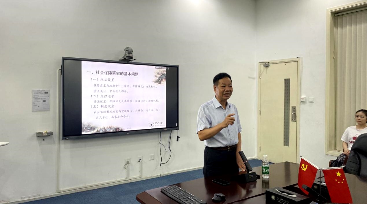 2022年8月28日下午,中国社会保障学会副会长、浙江大学williamhill体育在线登录何文炯教授在williamhill体育在线登录311会议室为williamhill体育官网师生开展了一场精彩的讲座。讲座由院党委副书记罗亚玲教授主持,李丹教授、沙治慧教授、张浩淼教授、林熙副教授、黄国武副教授、张伟科副教授、杨帆研究员、曹杨副研究员、田益豪副研究员等老师和同学共40余人参加了此次讲座活动。