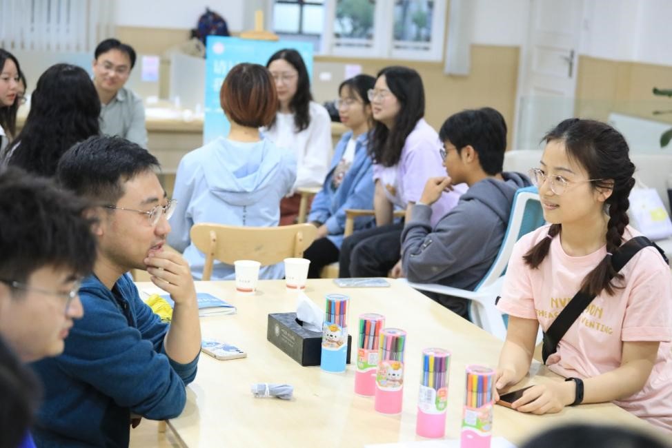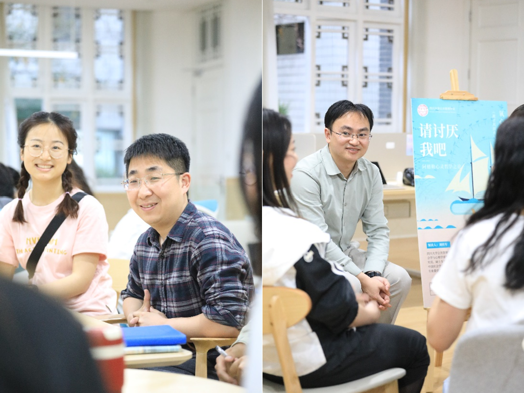 短暂的休息后,读书会进入下半场——将自己的人生经历与思考与《被讨厌的勇气》一书的内容相结合,进行更深层次的分享。在逐渐了解了彼此之后,同学们的分享欲和表达欲更强了,每个人都讲出了自己曾经的经历和困惑,并且得到了小组内其他成员的鼓励和帮助。在相互理解、相互支持的氛围中,在座的同学侃侃而谈,又悉心倾听,在五光十色的内心表露中寻找思维的共鸣,在珠玑遍布的表达中思考生活的意义。时间在流逝,气氛却越来越热烈,原本定于21点结束的活动,直到21点40分,大家才在刘老师的提醒下恋恋不舍地结束了讨论。