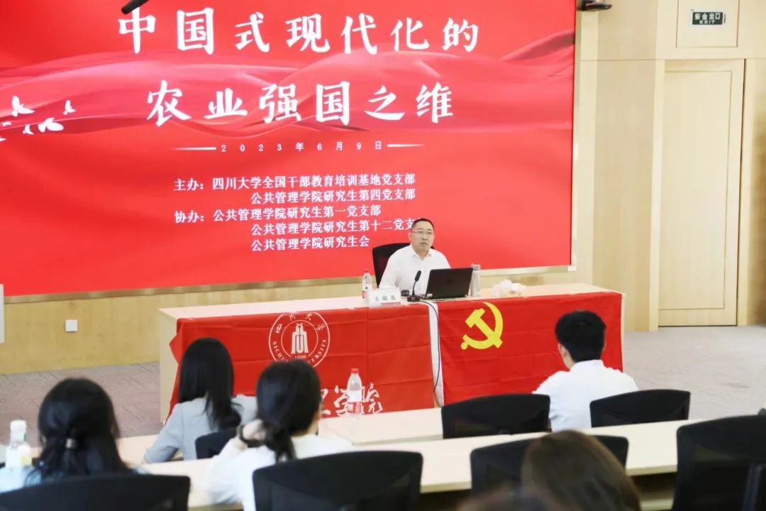 为深入开展学习贯彻习近平新时代中国特色社会主义思想主题教育,落实党的二十大精神走深走实,williamhill体育在线登录研究生第四党支部与全国干部教育培训基地邀请williamhill体育在线登录博士生导师王敬尧教授为全体师生党员讲授了题为“中国式现代化的农业强国之维”的专题党课,党课由研究生第四党支部书记李岚老师主持。