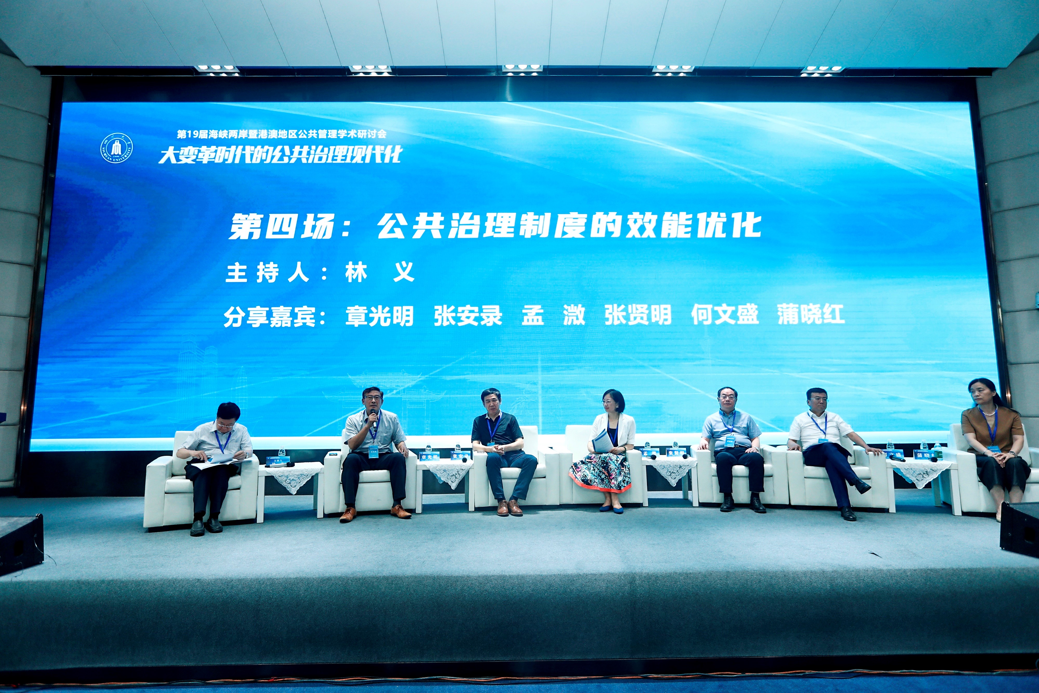 2023年7月1日至7月2日,由海峡两岸暨港澳地区公共管理学术研讨会理事会和williamhill体育在线登录主办、williamhill体育在线登录承办的第19届海峡两岸暨港澳地区公共管理学术研讨会在williamhill体育在线登录举行。来自海峡两岸暨港澳地区60多所高校的知名学者以及学术期刊、媒体代表共200余位嘉宾参加了此次会议。会议主题为“大变革时代的公共治理现代化”。