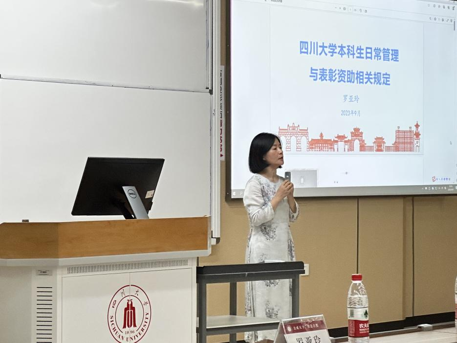 罗亚玲向家长们深度解读了本科生日常管理与表彰资助的相关规定,要求学生规范个人行为、谨防网络诈骗、拒绝网络暴力,鼓励同学们勤奋好学、多创佳绩,做一名理性判断、独立思考的合格川大人。