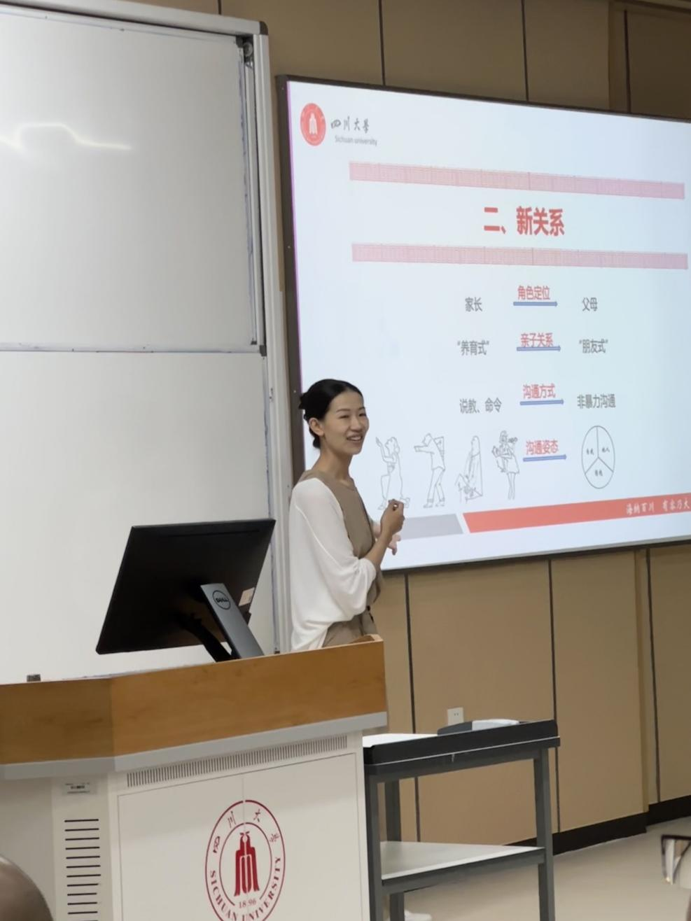 袁莉详细介绍了学院的专业设置和发展规划,强调家校联动、师生沟通的重要性,介绍了保研考研、创新创业、学术交流、科研训练等发展路径和各个专业的相关信息,全面呈现了川大学子未来发展的无限可能;呼吁新生了解专业内容、做好生涯规划、把握发展机遇,主动沟通、刻苦学习,积极参与校内创新与科研项目,争做文理兼修、全面发展的综合型人才。