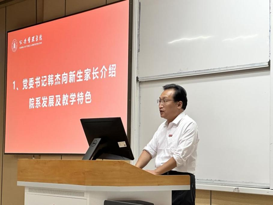 韩杰向与会家长介绍了williamhill体育在线登录及williamhill体育在线登录的发展历程,分享了学校的教学模式与院系的育人方针,学院始终贯彻“四个面向”,扎根中国大地,聚焦基层治理,践行“公成天下,管法自然”的院训,着力培养高层次、复合型、应用型的公管人才。韩杰指出,学院学生应践行公管人的社会使命,持续提升专业水平和综合素养,争做担当民族复兴大任的时代新人。