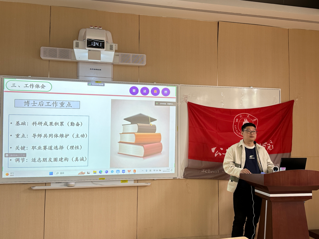 庞祯敬老师结合自己在清华大学攻读博士后的经历详细介绍了在站博士后的类型和申请流程。他强调提早的准备、积极的行动、系统的策略和明确的方向是博士生发展规划的关键要素。