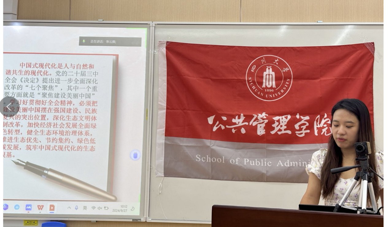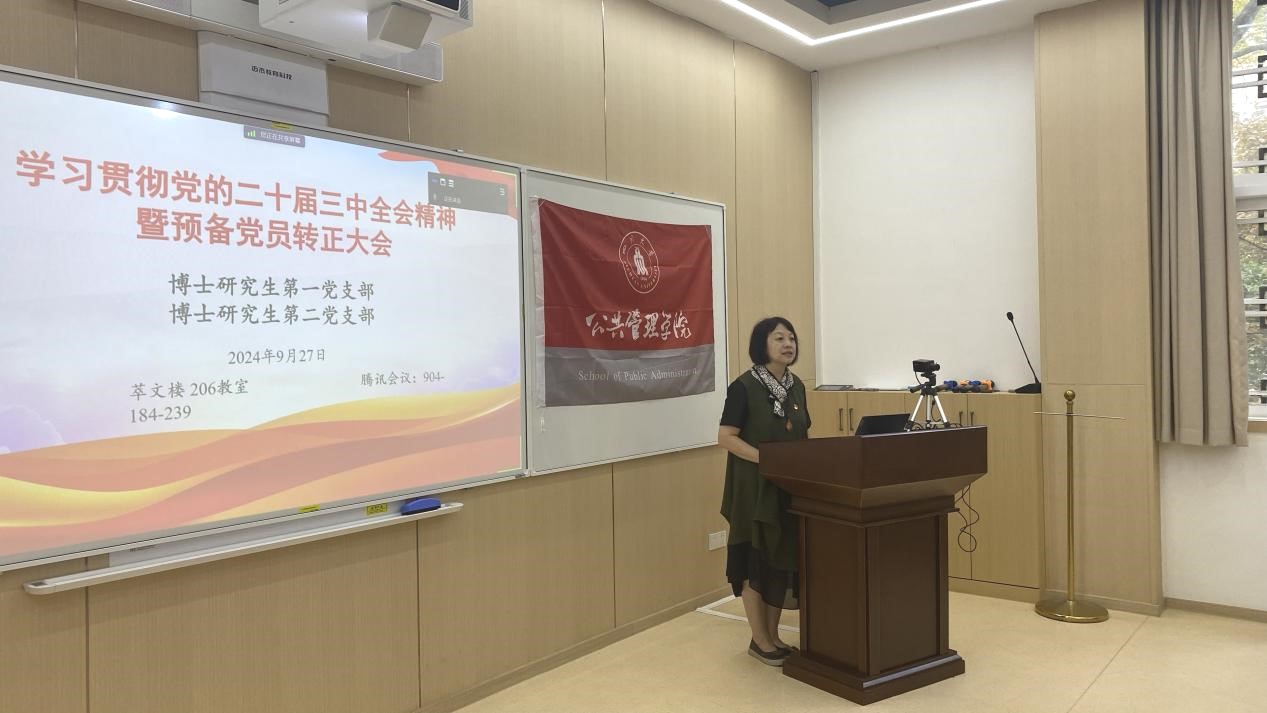 为深入贯彻学习党的二十届三中全会精神,9月27日,williamhill体育在线登录博士生第一、第二党支部在萃文楼206教室联合开展了题为“深学细悟笃行”党的二十届三中全会精神专题学习活动,活动由李岚老师主持。
