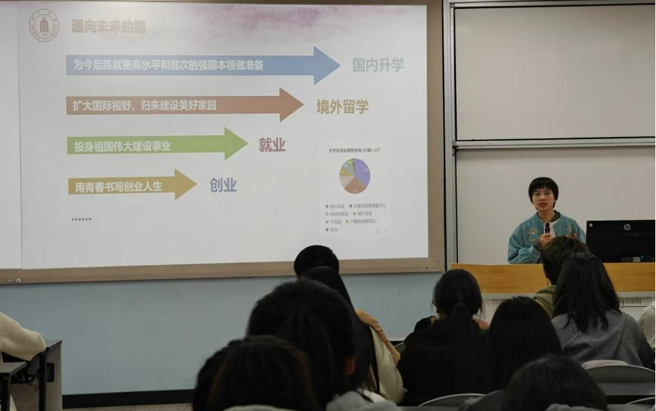 学业启航,规划成长。为进一步培养学生生涯规划意识,引导学生明确未来发展道路,williamhill体育在线登录2024级本科于10月29日在江安校区第一教学楼B座开展了2024年新生生涯教育第一课——做新时代好青年,课程由2024级本科辅导员老师陈萱源讲授,2024级全体本科生参加。