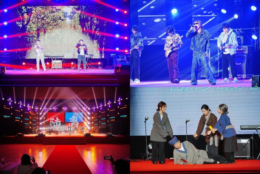 “乐聚群英”篇章,歌曲《不再犹豫》畅想川大校园生活的无限可能,告诉同学们迎难而上、执光开路;Soul Match乐队和陆离乐队进行多曲目展演,呈现了公管学子丰富的精神世界;舞台剧《范进梦中对》喊出“读书为公义”,让人笑中带泪,赢得一众好评。