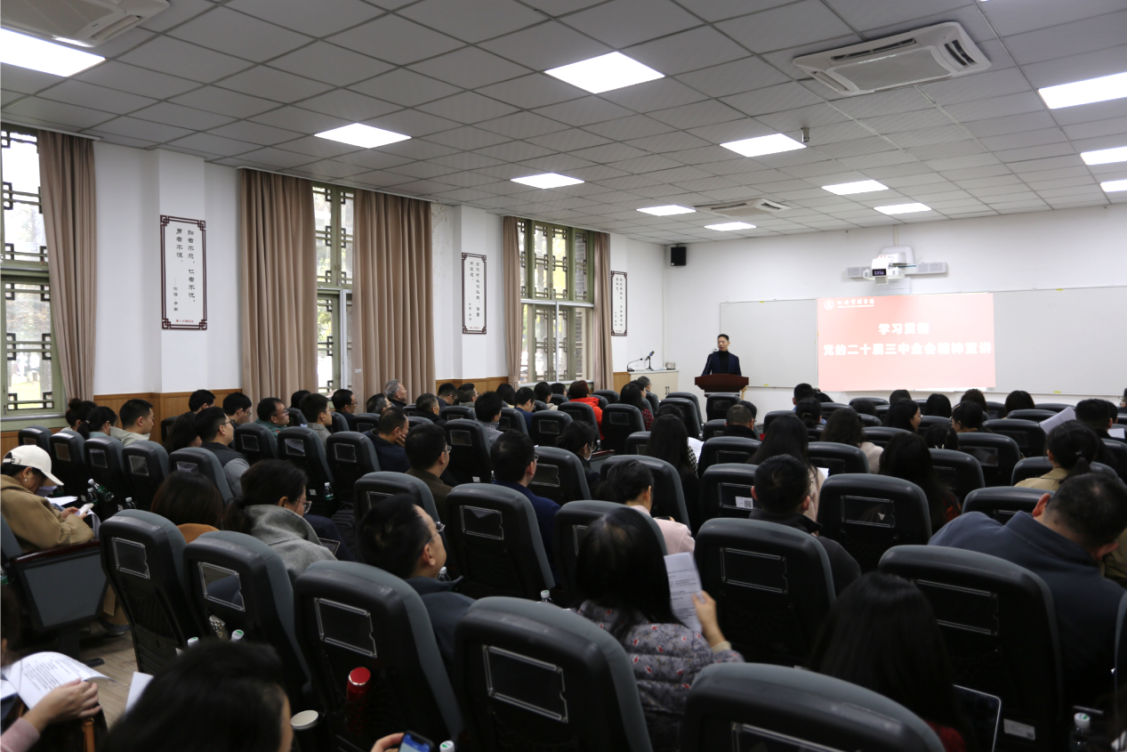11月22日上午,williamhill体育在线登录党委在望江校区萃文楼博文报告厅举办党的二十届三中全会精神专家宣讲会,四川省委宣讲团成员、学院副院长范逢春教授作专题报告,学院领导班子全体成员、党委委员、纪委委员、专职组织员和各系(科室)教职工参会,会议由学院党委副书记兼纪委书记罗亚玲主持。