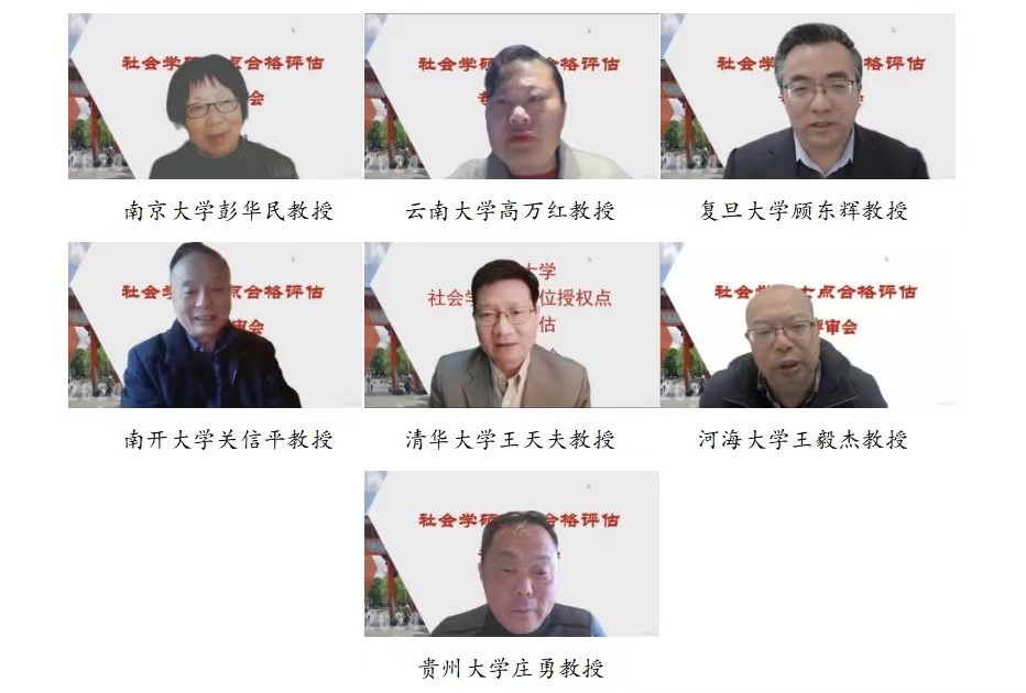 社会学评审专家组由南京大学彭华民教授担任组长,云南大学高万红教授、复旦大学顾东辉教授、南开大学关信平教授、清华大学王天夫教授、河海大学王毅杰教授和贵州大学庄勇教授为成员(专家以姓名拼音排序),对我校社会学一级学科硕士学位授权点在2020-2025学年度的建设和发展情况进行了全面考察。williamhill体育在线登录夏志强院长、学位点全体教师共同出席会议,会议由学院王慧敏副院长主持。