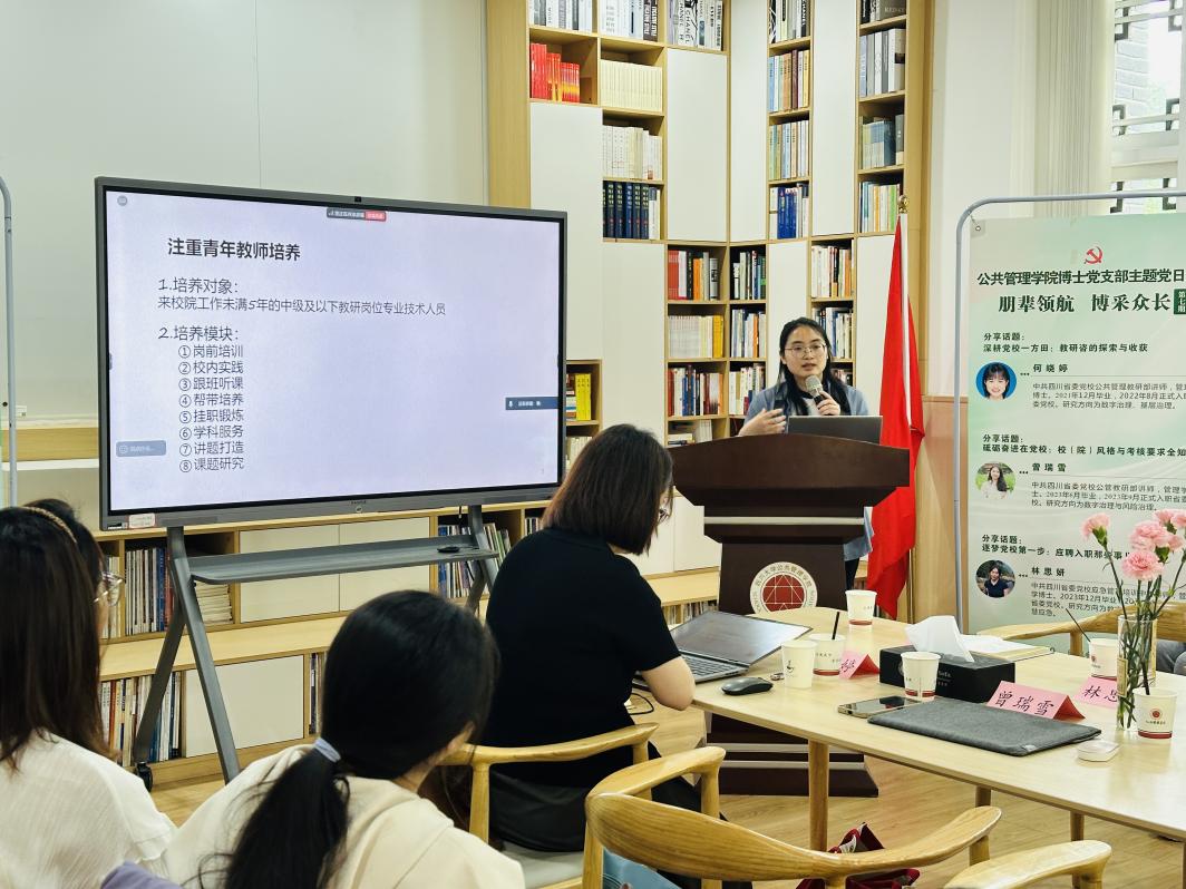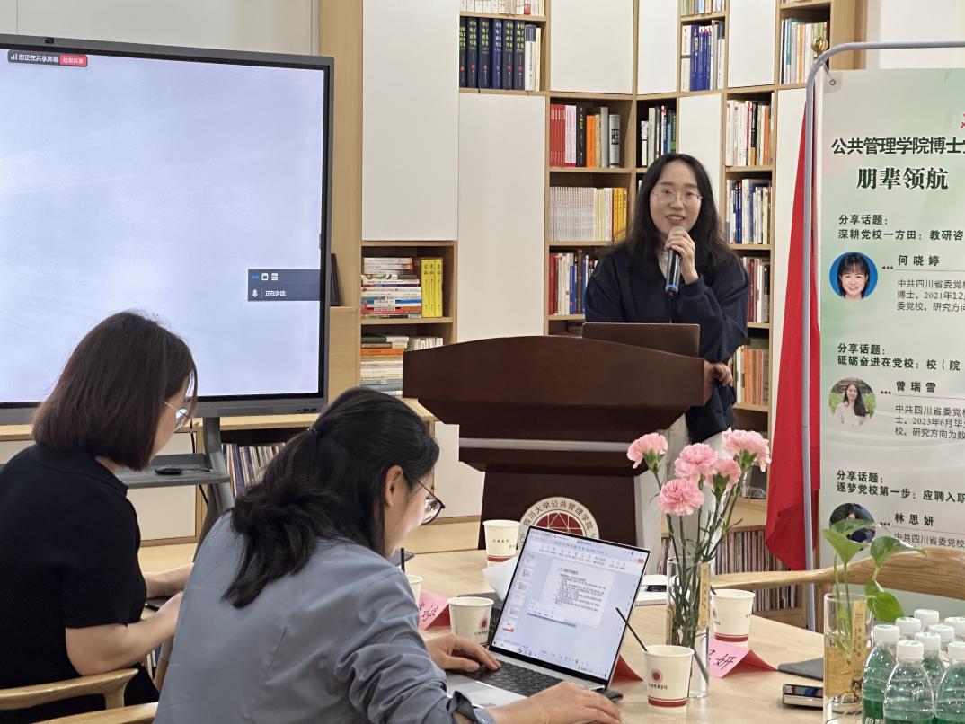 为深化校地党建联建,助力青年学者成长与职业规划,williamhill体育在线登录博士生第一、第二党支部于4月29日共同举办了第七期“朋辈领航·博采众长”主题党日活动。本次活动特邀中共四川省委党校何晓婷、曾瑞雪、林思妍三位老师分享了在党校求职及工作的经验。李岚老师主持会议,部分博士生和干部教育学硕士生通过线上线下联动参会。