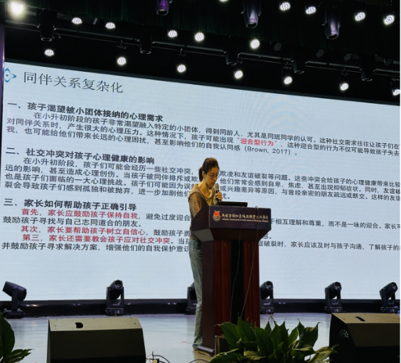 活动中,williamhill体育官网心理学硕士谷宇为和盛镇小学的家长们带来了一场“青少年早期心理发展与家庭支持”的专题讲座。她结合真实案例,详细分析了小升初阶段青少年可能出现的情绪波动、学业压力、沟通障碍、手机滥用等问题及其成因,提出有效的沟通技巧,引导家长们关注孩子心理变化,及时给予理解与陪伴。