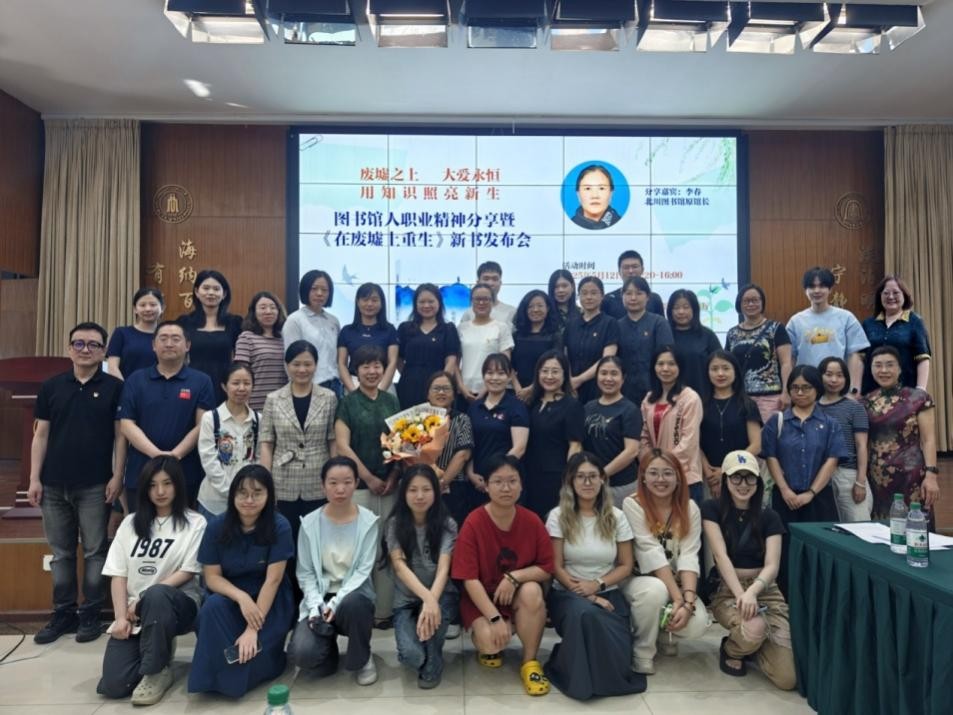 随后,本次分享会特邀北川图书馆原馆长、《在废墟中重生》作者李春老师以亲历者视角,为大家深情讲述了汶川5·12大地震后北川图书馆浴火重生的艰难历程。在重建过程中,图书馆人克服余震频发的安全威胁,在艰苦条件下开展图书抢救与废墟清理工作。从基础功能恢复到服务体系优化,最终实现北川图书馆从震前县级三级图书馆向国家级一级图书馆的跨越式发展。这一蜕变生动诠释了在党中央“以人为本、尊重科学、不畏艰险、百折不挠”的抗震救灾精神指引下,图书馆工作者为人民服务、为文化事业拼搏的担当与奉献。