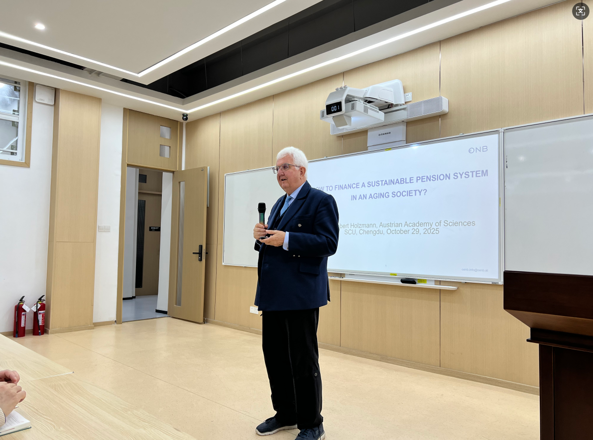 2025年10月29日上午,受劳动与社会保障系邀请,奥地利科学院院士、前奥地利央行行长、原世界银行社会保护部部长罗伯特·霍尔兹曼教授到访williamhill体育官网开展学术讲座。院长夏志强教授代表学院对霍尔兹曼教授的到访表示了诚挚欢迎。劳动与社会保障系教师及硕博士研究生参加了此次讲座。讲座由劳动与社会保障系蒲晓红教授主持。