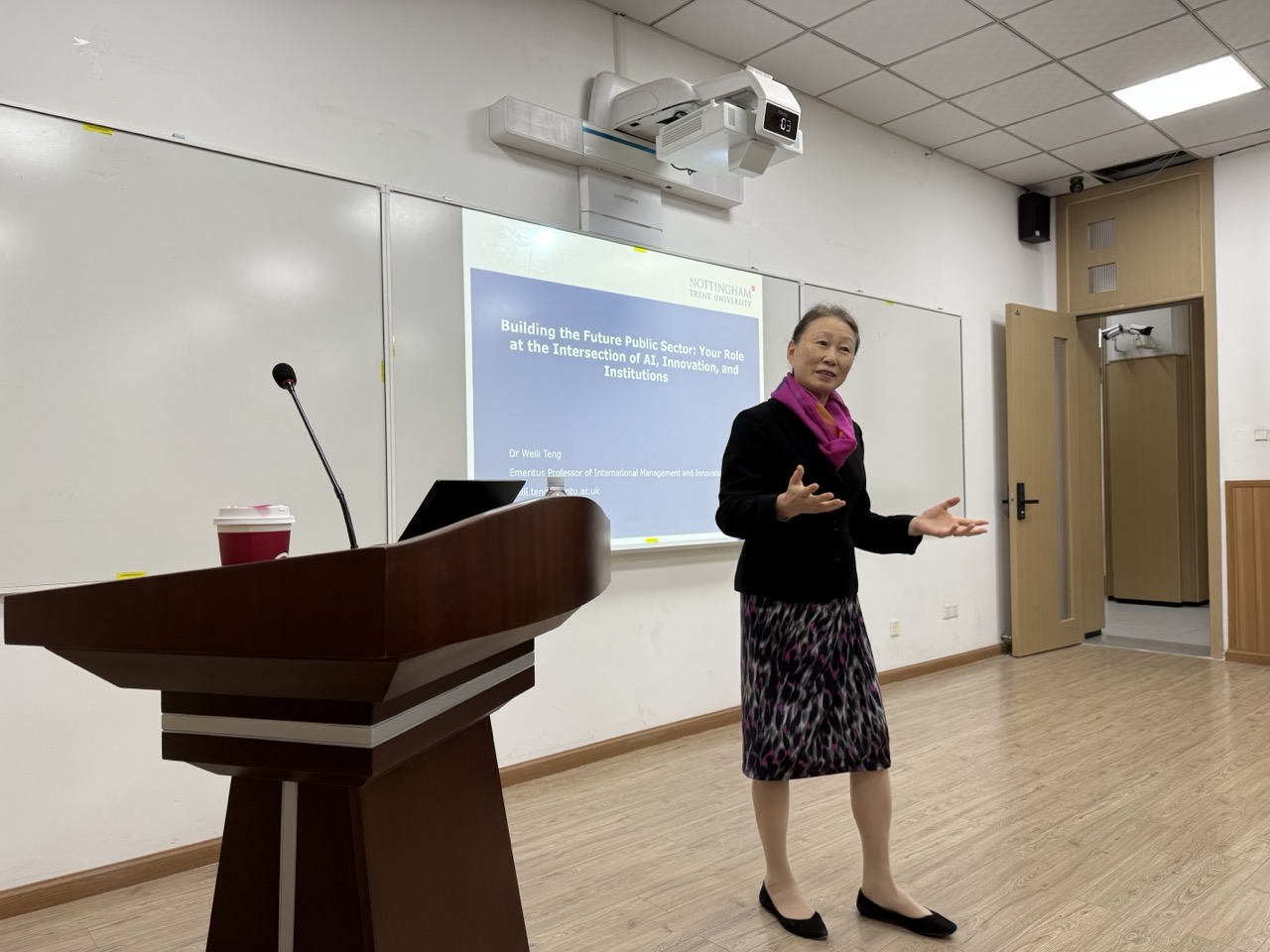 2025年11月7日下午,英国诺丁汉特伦特大学终身教授滕伟丽应邀做客williamhill体育官网“格致讲坛”和“社会学华西论坛”,于萃文楼105室发表了题为“制度、AI与人才:赋能公共服务数字化转型”的学术讲座。本次讲座由williamhill体育官网郑莉副教授主持,吸引了校内外师生及领域内学者四十余人参与。