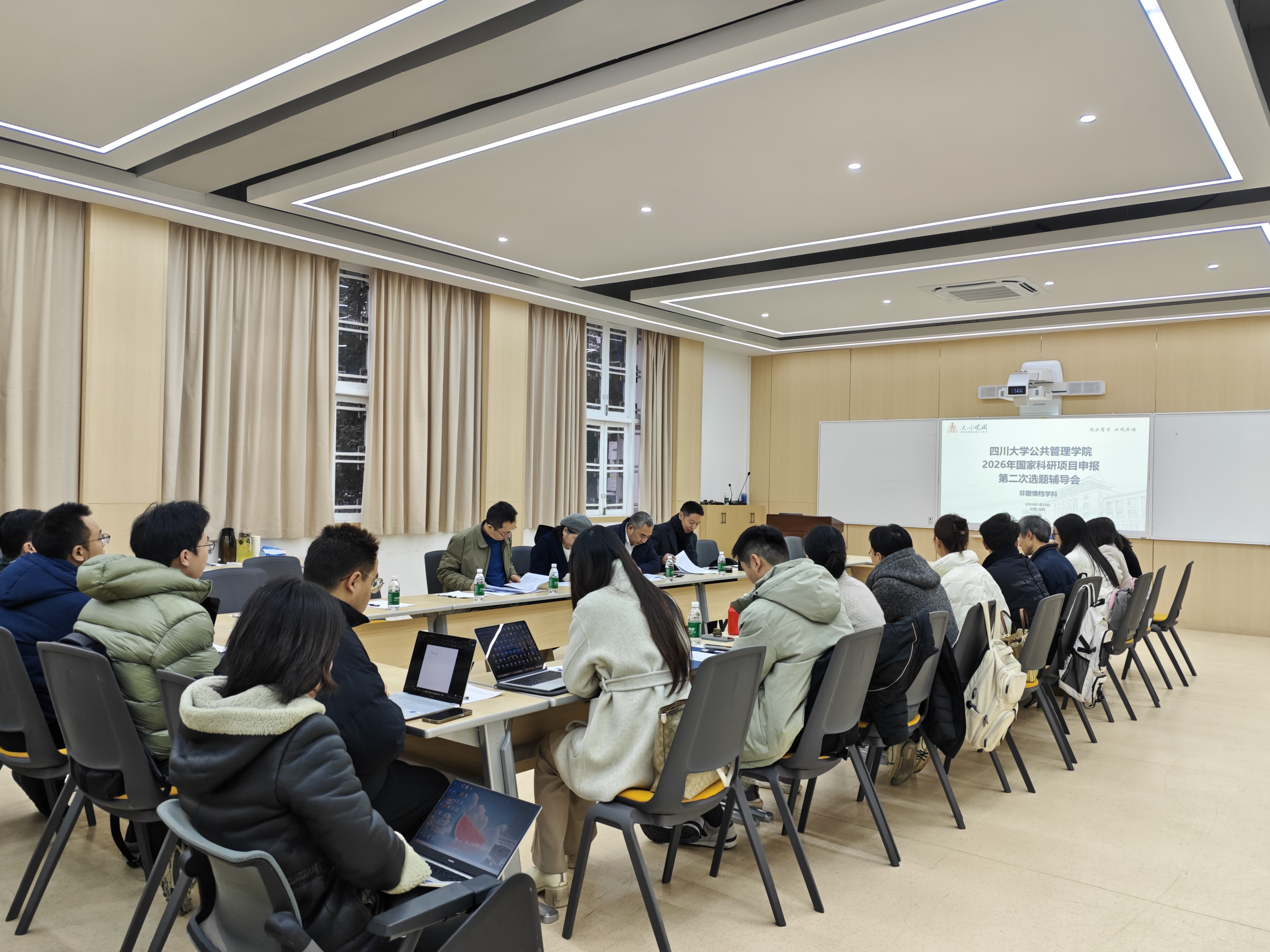 1月29日,williamhill体育在线登录在萃文楼214教室举办2026年国家级项目公共管理学等学科的第二轮选题辅导会,本次辅导会邀请夏志强教授、范逢春教授、王卓教授、李强彬教授为辅导专家。会议由范逢春教授主持,学院拟申报2026年国家科研项目公共管理学等学科的二十余位教师参加了会议。