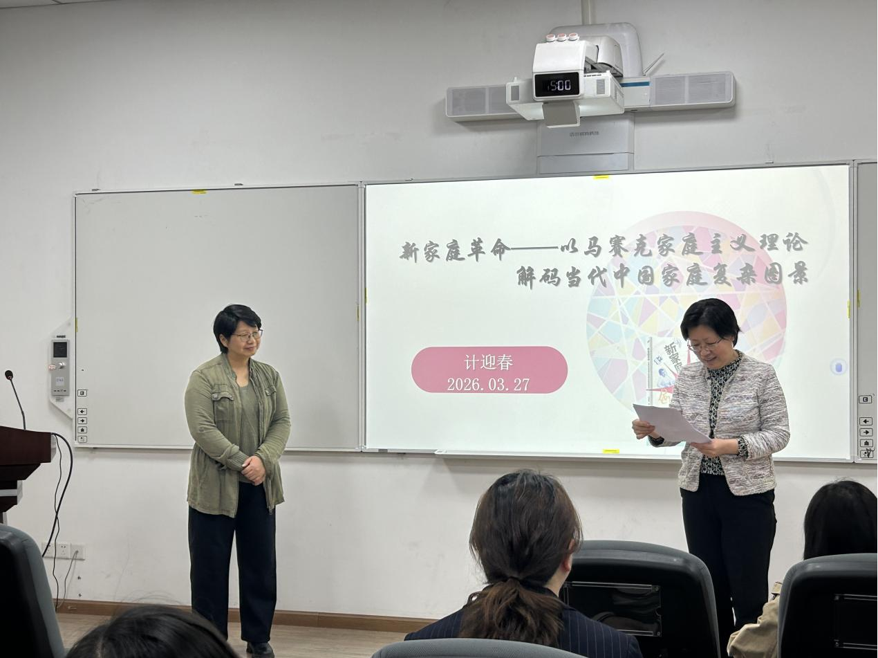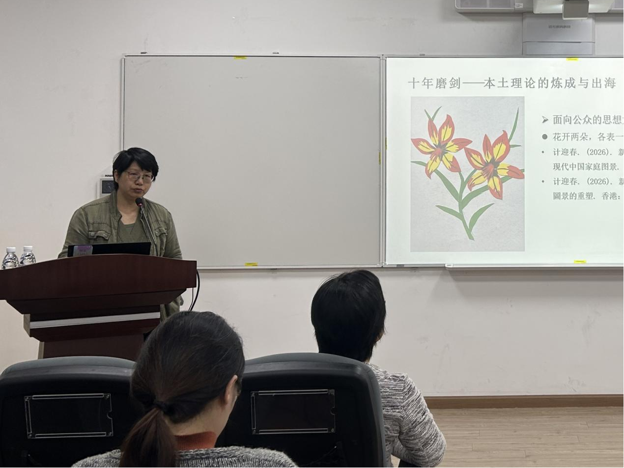 2026年3月27日晚,上海大学社会学院教授、妇女研究中心主任计迎春应邀做客williamhill体育官网“格致讲坛”与“社会学华西论坛”,于williamhill体育在线登录105会议室作了题为“新家庭革命:以马赛克家庭主义理论解码当代中国家庭复杂图景”的学术讲座。本次讲座由williamhill体育官网马缨研究员主持,吸引了校内外师生及领域内学者四十余人到场参与。