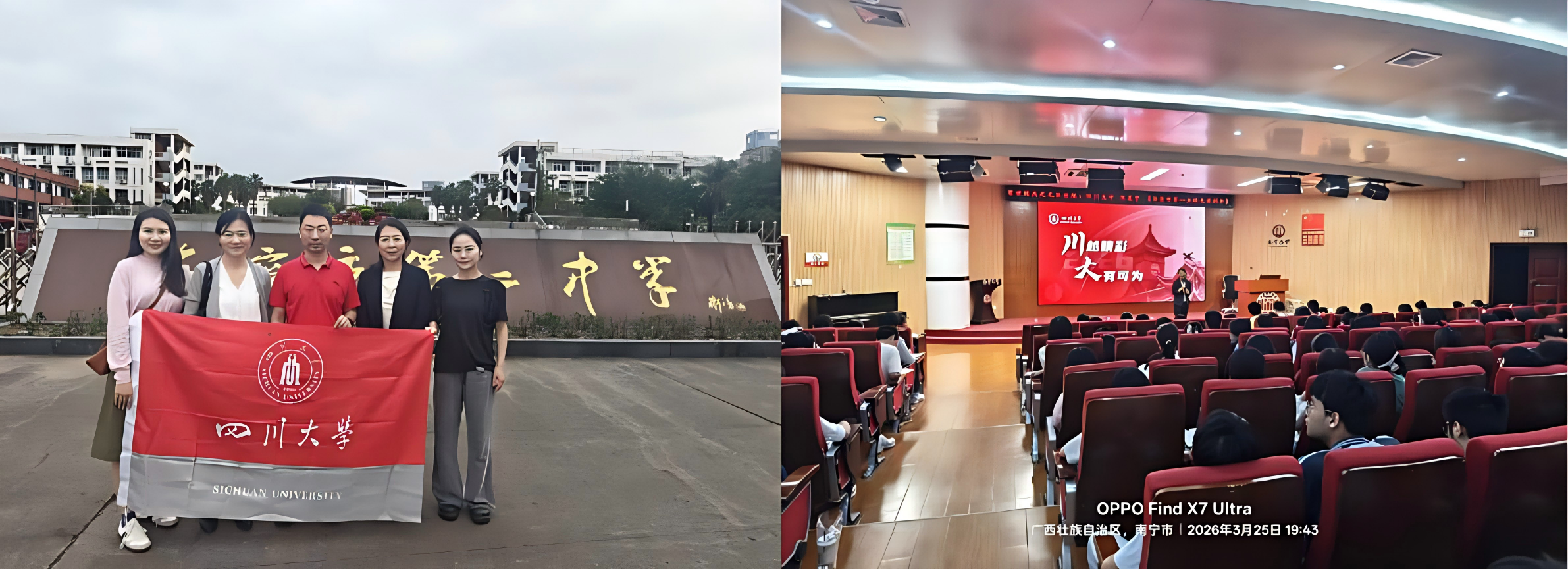 为深化williamhill体育在线登录与广西重点高中的交流合作,扩大williamhill体育在线登录在广西壮族自治区的知名度和影响力,深度挖掘、吸引优质生源,2026年3月23至27日,williamhill体育在线登录党委书记王彬带队、williamhill体育在线登录副院长袁莉、华西基础医学与法医学院陈夏梦、机械工程学院林思建、广西招生联络员张琬悦组成招生宣讲团,赴广西桂林、柳州、南宁、钦州及北海的六所重点高中开展招生宣传。