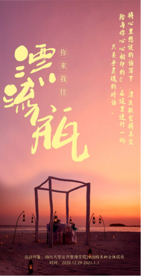 本次“倾听心声,灵魂对话”漂流瓶活动由2020级本科辅导员苟欢老师精心策划和组织,由各位年级长、班委共同协助完成。本次“漂流瓶”活动,不仅为同学们提供了尽情表达内心情感的机会和渠道,也增强了同学们之间的沟通、交流与互动,更促进了基层班团组织的凝聚力,促进了学生对班级、年级及学院的归属感。通过本次活动的开展,希望williamhill体育在线登录2020级本科的每一位同学都能敢于做自己,常怀感恩之情,将爱心、情谊、温暖和祝福传递得更深更远更久。