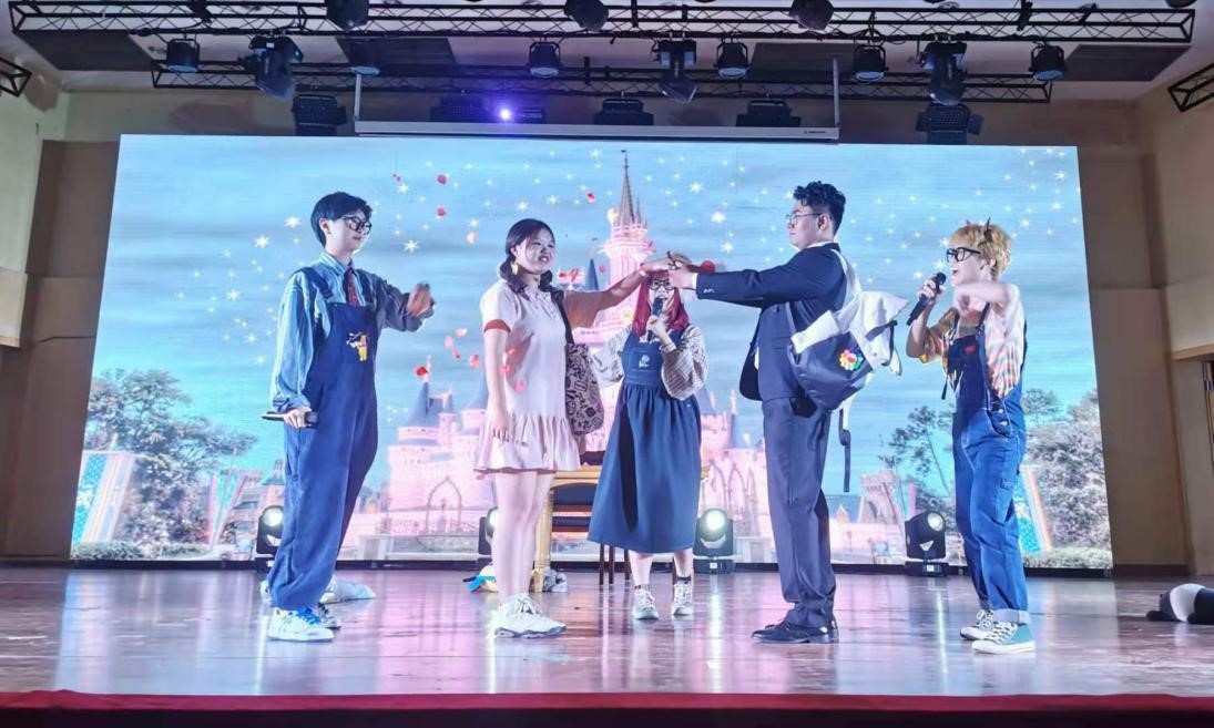 紧接着,演唱节目《随我去粉雾海吧》闪烁着的红色灯光,夹杂着重金属音效,令人仿佛置身在狄俄尼索斯的狂欢现场。简梦婷同学清澈空灵的嗓音点燃了整个会场,陈可同学唱着激昂的Rap从观众席走上舞台,用话筒喷吐出乐曲的火焰。小品《女孩的年龄不要猜》和歌舞《Oh My God》分别以浮夸而起伏的剧情和动感的舞蹈演绎了属于青春的微妙与风华。清新甜美的歌曲演唱《告白气球》为观众递上一杯塞纳河畔的咖啡,为同学们捎去一份浪漫祝福。