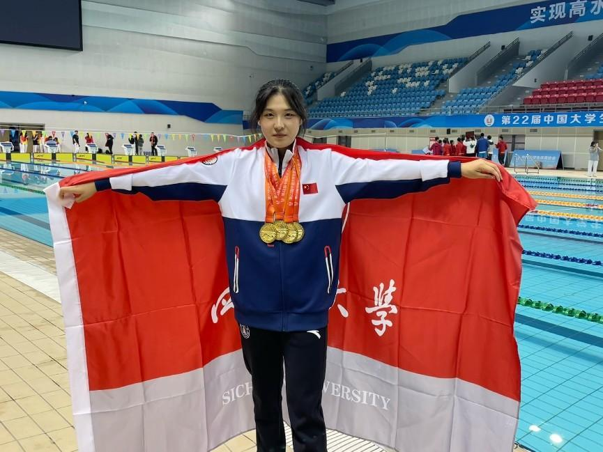 2023年她首次代表williamhill体育在线登录参加第21届中国大学生游泳锦标赛,不仅获得了个人单项冠军,更实现了川大游泳队全国赛事金牌零的突破。谦虚的她表示:“走下领奖台一切便从零开始”,而在她心里有一个更高的奋斗目标——全国学生运动会。