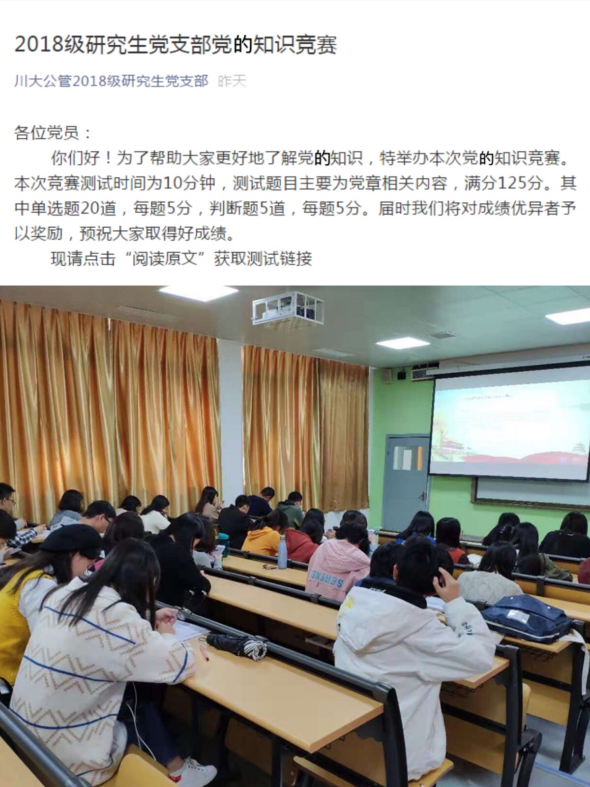 2018级研究生全体党员认真答题