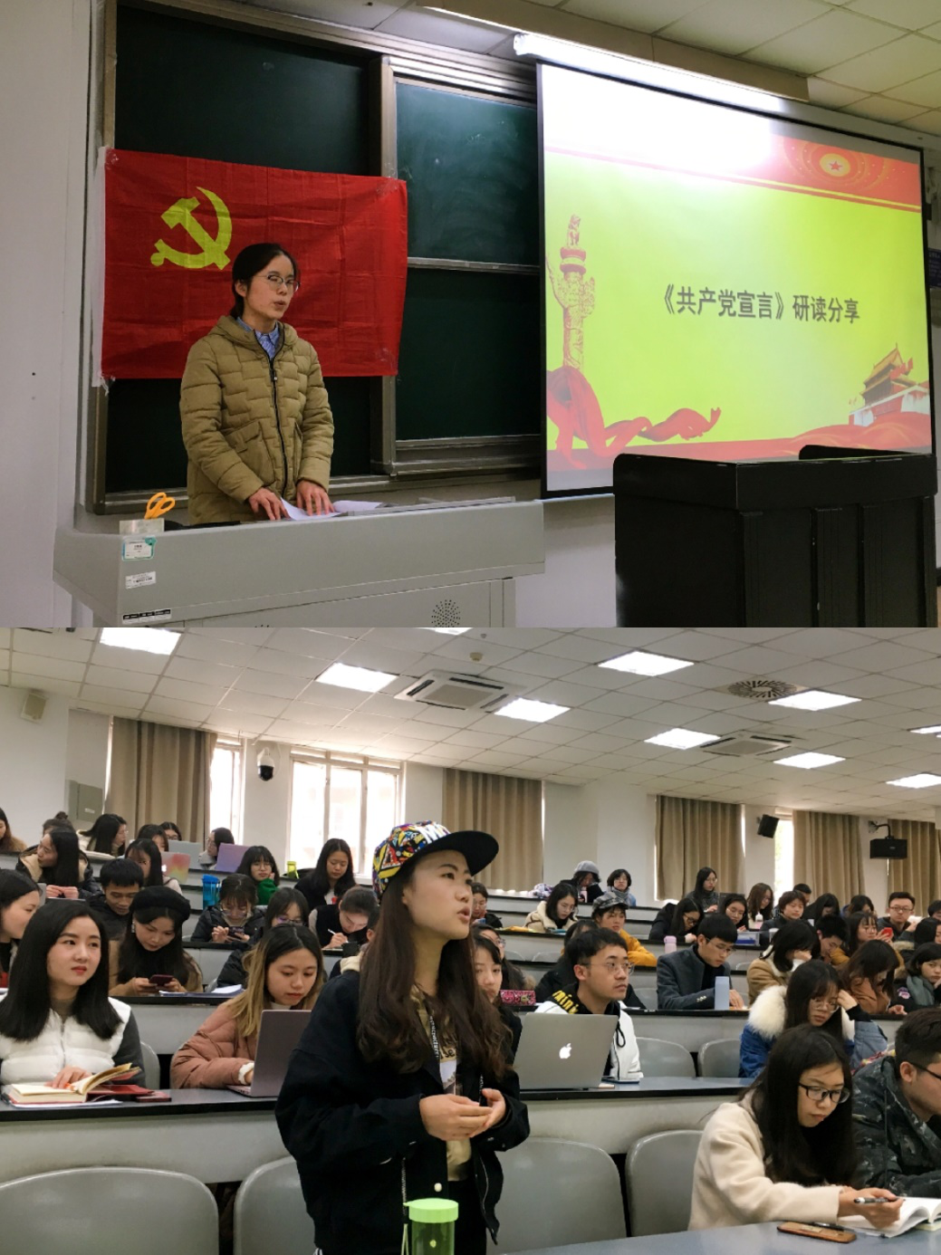 随后,全体党员进入“红色经典”名著研读——《共产党宣言》的学习环节。“红色经典”名著研读活动依托第三支部哲学和宗教学专业党员同志开展,将党建工作与专著研读学习相融合。首先,由williamhill体育在线登录2018级研究生第三支部韩洁同志进行《共产党宣言》研读。韩洁同志指出,共产党宣言的诞生标志着马克思主义的诞生,对全世界的无产阶级革命运动起了巨大的推动作用。她从马克思、恩格斯的生平、著作的写作背景、著作的引言和正文四章全面、多维度阐释了《共产党宣言》,并结合我国特点,提出了对新时代中国特色社会主义建设的建议。