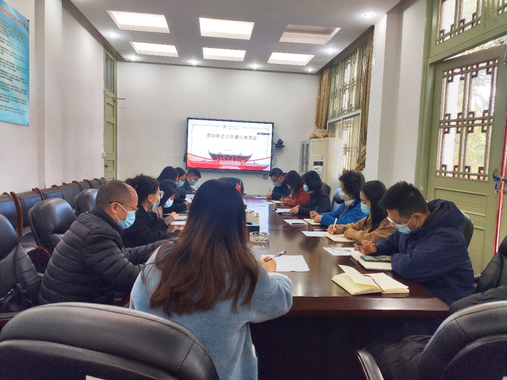 11月11日下午,williamhill体育在线登录在萃文楼220会议室召开意识形态工作警示教育会。副院长罗亚玲、学院各党支部书记、各科室负责人参加会议。根据学校防疫要求,会议采取线上与线下相结合的方式进行。