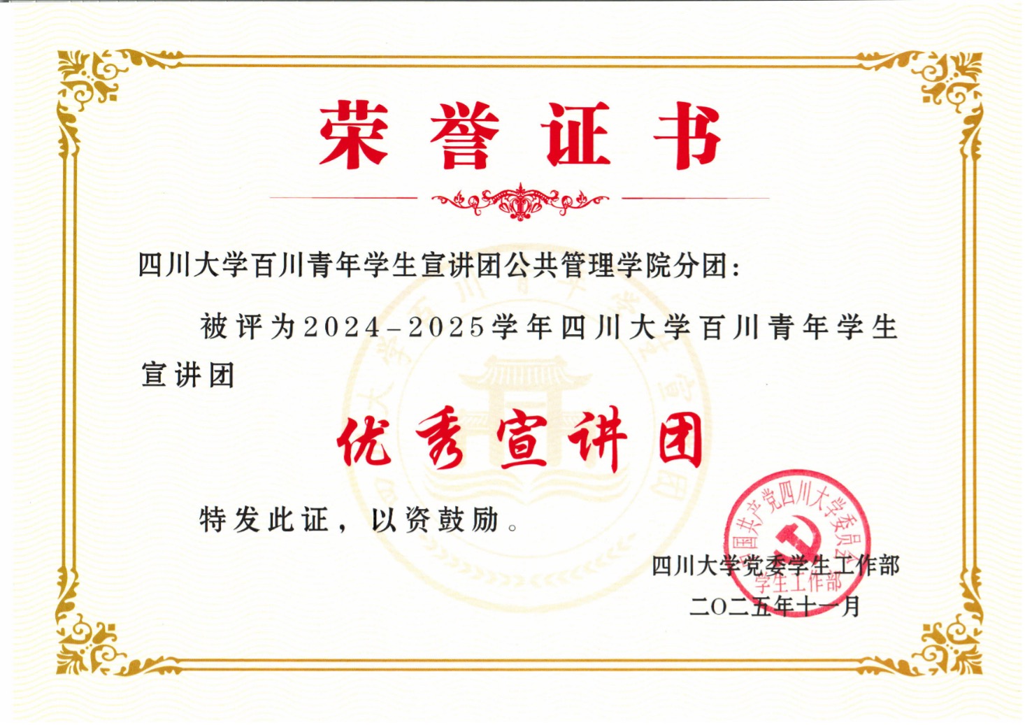 此次表彰既是对williamhill体育官网宣讲工作的高度认可,也是对全体团员持续奋进的鞭策与激励。未来,williamhill体育在线登录分团将继续秉持“公成天下,管法自然”的院训精神,用青年话语传递时代强音,以专业素养讲好中国故事,为推动百川宣讲工作高质量发展贡献更多公管智慧与力量!