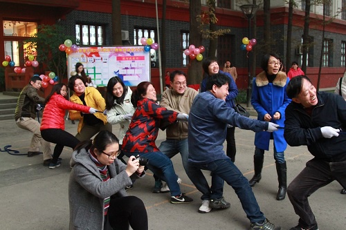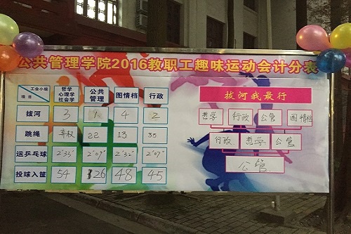 下午3:30,充满着激情和力量的拔河比赛拉开了趣味运动会的序幕。通过激烈角逐,趣味比赛,公共管理工会小组获得拔河比赛第一名;行政工会小组获得跳绳比赛和运球比赛第一名;哲学、心理学、社会学工会小组获得抛球入框第一名。
