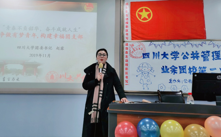 校团委书记赵露老师为同学们作了主题为“争做有梦青年,构建幸福团支部”的精彩授课。在一段关于“什么是幸福”的采访后,赵老师引出了“在川大是否幸福”的话题。随后,赵老师提出了课程的核心内容“青春不负韶华,奋斗成就人生”。然后,赵老师向同学们介绍了为提升同学们的幸福感学校在努力做的事情,其中的每一项都令这些在川大生活学习了将近一个学期的同学深有体会并为之感动。最后,赵老师提出要成为真正有梦的幸福川大人需要努力奋斗,青春+梦想+奋斗=幸福。这一看似简单的公式背后蕴含的深意,值得每个人去深思,并付诸行动。