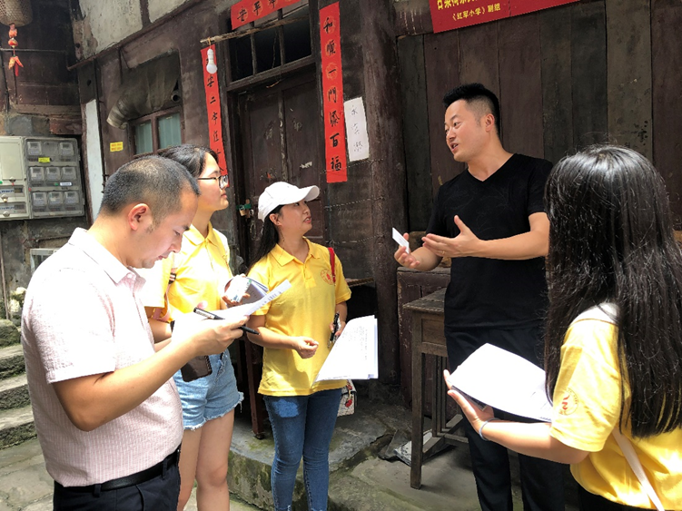 团队全体成员7月29日下午14时从成都乘火车出发前往巴中,次日凌晨1点到达巴中。7月30日上午9时团队同学们冒雨前往恩阳红色古镇开展街头调查。在开展红色精神传承的街头问卷调查过程中,同学们与游客一起讨论革命先辈的红色故事,讨论参访红色教育基地的意义,了解群众参观革命遗址次数、对待红色精神传承的态度,从而为宣传红色文化提出宝贵的意见。参与调查的游客们纷纷表示:“我们只有看到了过去,才会更加热爱今天的祖国。”