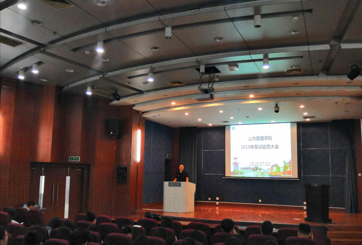 在动员讲话中,杨磊副书记首先从《国防教育法》和《兵役法》的角度,阐述了大学生参加军事训练的必要性和紧迫性;其次,中美贸易摩擦持续加剧、美国和伊朗之间的一触即发、全球恐怖主义依然猖獗、日本右翼势力持续走强等方面,结合案例,告诫即将参训的同学们“当今世界并不太平”;接下来,杨磊副书记以各种军中重器为例,展示了近年来我国军事现代化所取得的优异成绩,用振奋人心的案例,向参训同学做出“一流装备需要一流人才”的论断,鼓励作为“强国一代”的同学们更要居安思危,练就健康体魄,提高国防意识和能力,为实现中华民族伟大复兴的中国梦保驾护航;最后,杨老师对参训学生提出了三点希望,一是希望学员们端正参训态度、尊重军训教官、服从训练安排;二是希望学员们承袭解放军特别能吃苦,特别能战斗的精神,胜利完成军事训练;三是希望同学们通过两周的军事训练,可以强健体魄、磨炼意志、树立“国家兴亡,匹夫有责”的家国情怀。