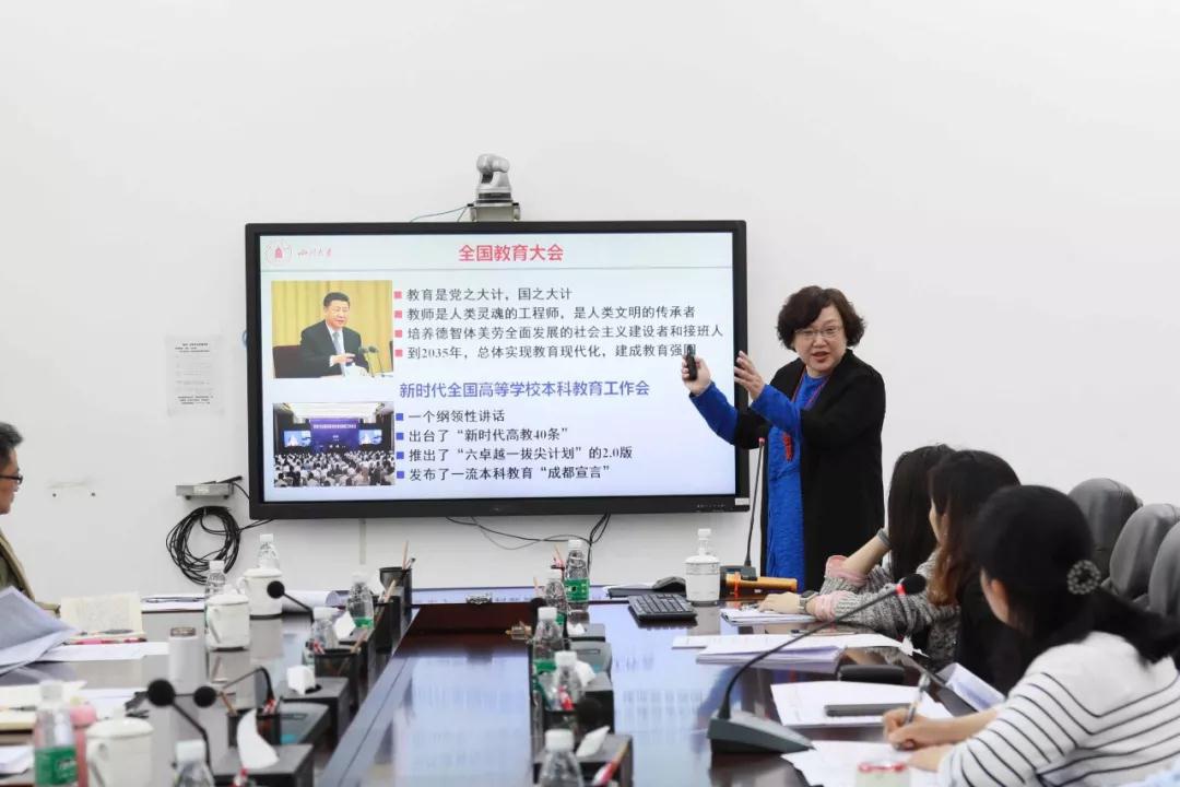 姜晓萍书记首先宣讲4月18日学校“新时代本科教育改革与发展大讨论”的主要精神和工作部署,传达了王建国书记、李言荣校长、张林副校长对川大本科教育升级再出发工作的重视与讲话要点,再结合校领导提出的面向未来聚焦本科教育改革发展六大关键环节阐释williamhill体育官网推进本科教育改革发展的引领要旨与战略思路,表示学院一定会全方位、全力保障本科教育的改革与发展。