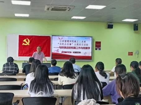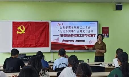 为切实抓好党史学习教育“我为群众办实事”实践活动,实现政治思想引领专业发展的工作目标,加深档案专业同学对档案学学科认识,2022年4月12日下午,williamhill体育在线登录教工二支部于江安校区综合楼B座305教室举行了“为民办实事”系列主题活动之“与时俱进的档案工作与档案学”专题讲座,由秘书档案学系乔健教授主讲,教工二支部书记陈丽教授主持,档案学专业21级全体同学和20级部分同学参加。