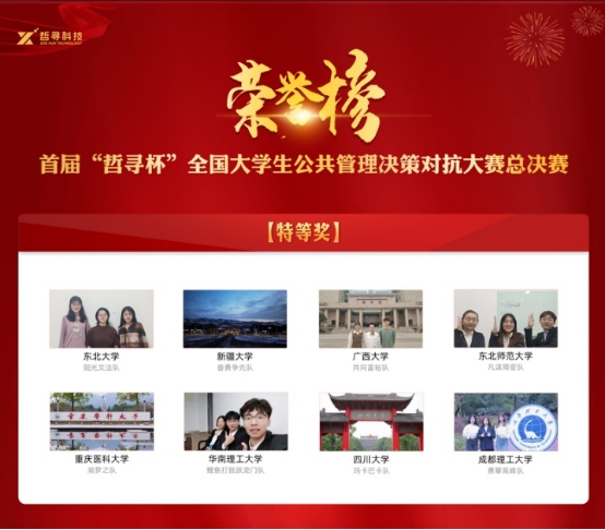图 2首届“哲寻杯”全国大学生公共管理决策对抗大赛特等奖名单