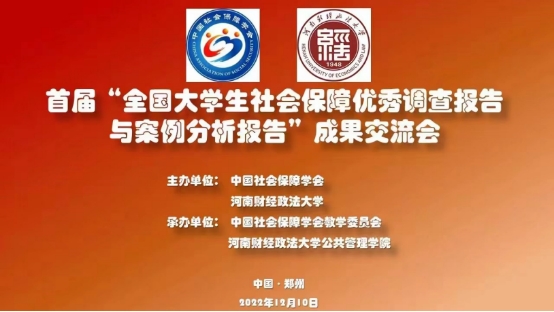 2022年12月10日,由中国社会保障学会和河南财经政法大学主办,中国社会保障学会教学委员会和河南财经大学williamhill体育在线登录承办的首届“全国大学生社会保障优秀调查报告与案例分析报告”成果交流会在线上成功举办。今年4月,由中国社会保障学会组织,由河南财经政法大学承办开展了首届“全国大学生社会保障优秀调查报告与案例分析报告”征集活动,活动旨在通过调查研究、撰写调查报告和分析报告,引导社会保障专业学生关注领域内的实际问题,提高其运用相关理论和方法解决实际问题的能力,促进社会保障学科发展。